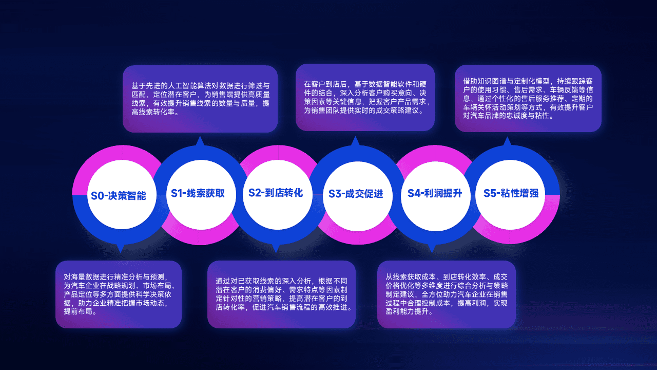 通过拓宽潜在客户来源、、优化线索分配并提高到店转化率,,,,以增强销售效率。。。。同时,,,,利用线索数据不断优化分析模型,,,,有效提升转化率,,扩大营销影响力。。。。